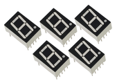 Un conjunto de 5 pantallas LED. Estas pantallas LED de 7 segmentos tienen segmentos que juntos pueden mostrar los números del 0 al 9 con un punto al lado. Estas pantallas tienen un color LED azul y una conexión de cátodo común.