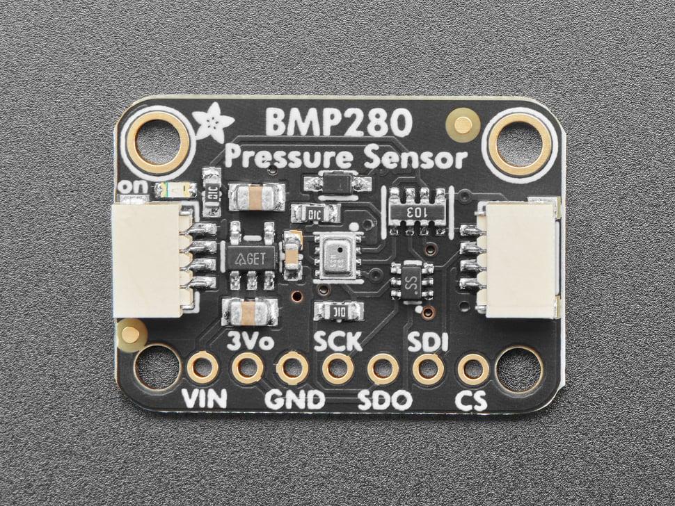 Las lecturas de altitud alteradas por presión se optimizan con precisión gracias a un nivel de ruido de baja altitud de 0,25 m, complementado con tiempos de conversión rápidos. Compatible con I₂C y SPI, ofrece opciones de integración flexibles. Soldado a una placa de circuito impreso (PCB) personalizada en formato STEMMA QT, se integra fácilmente en proyectos, permitiendo conexiones sin soldadura y la conexión en cadena con otros sensores mediante conectores Sparkfun Qwiic.