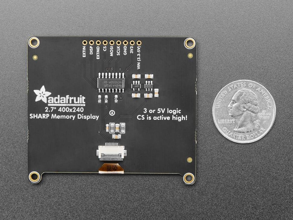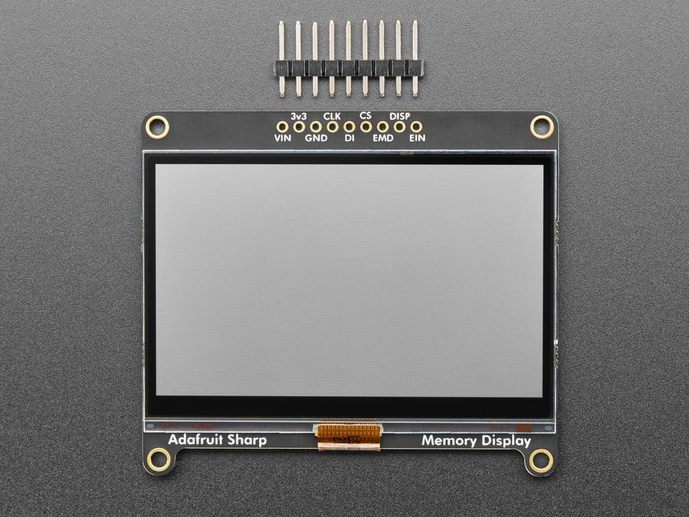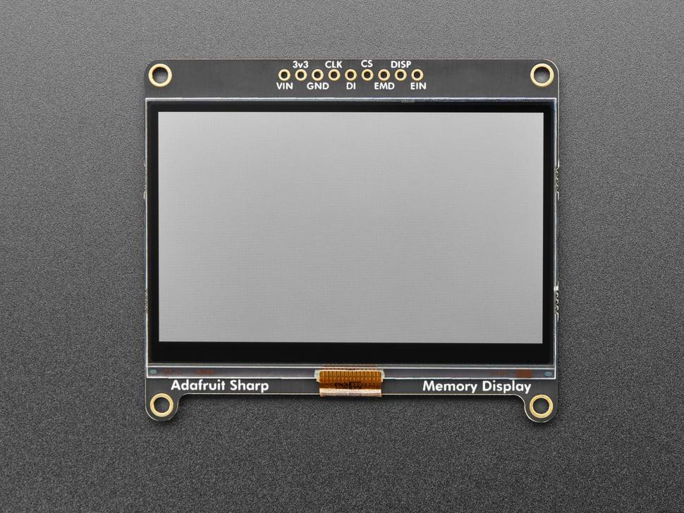 El módulo de memoria Adafruit SHARP de 2,7" (400x240) combina de forma única las características de la tinta electrónica y la pantalla LCD, ofreciendo un consumo de energía ultrabajo con altas tasas de refresco. La pantalla cuenta con un fondo gris para una presentación de píxeles negros sobre fondo gris, ideal para visualizaciones tipo lector electrónico sin retroiluminación, lo que garantiza su legibilidad a la luz del día.
