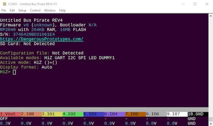 Interactúa fácilmente con chips mediante protocolos de bus comunes, como I2C, SPI y UART. Introduce comandos a través de un terminal serie y recibe respuestas inmediatas. El modo VT100 mejora la experiencia con texto en color y una barra de estado que muestra la funcionalidad y los voltajes de los pines.