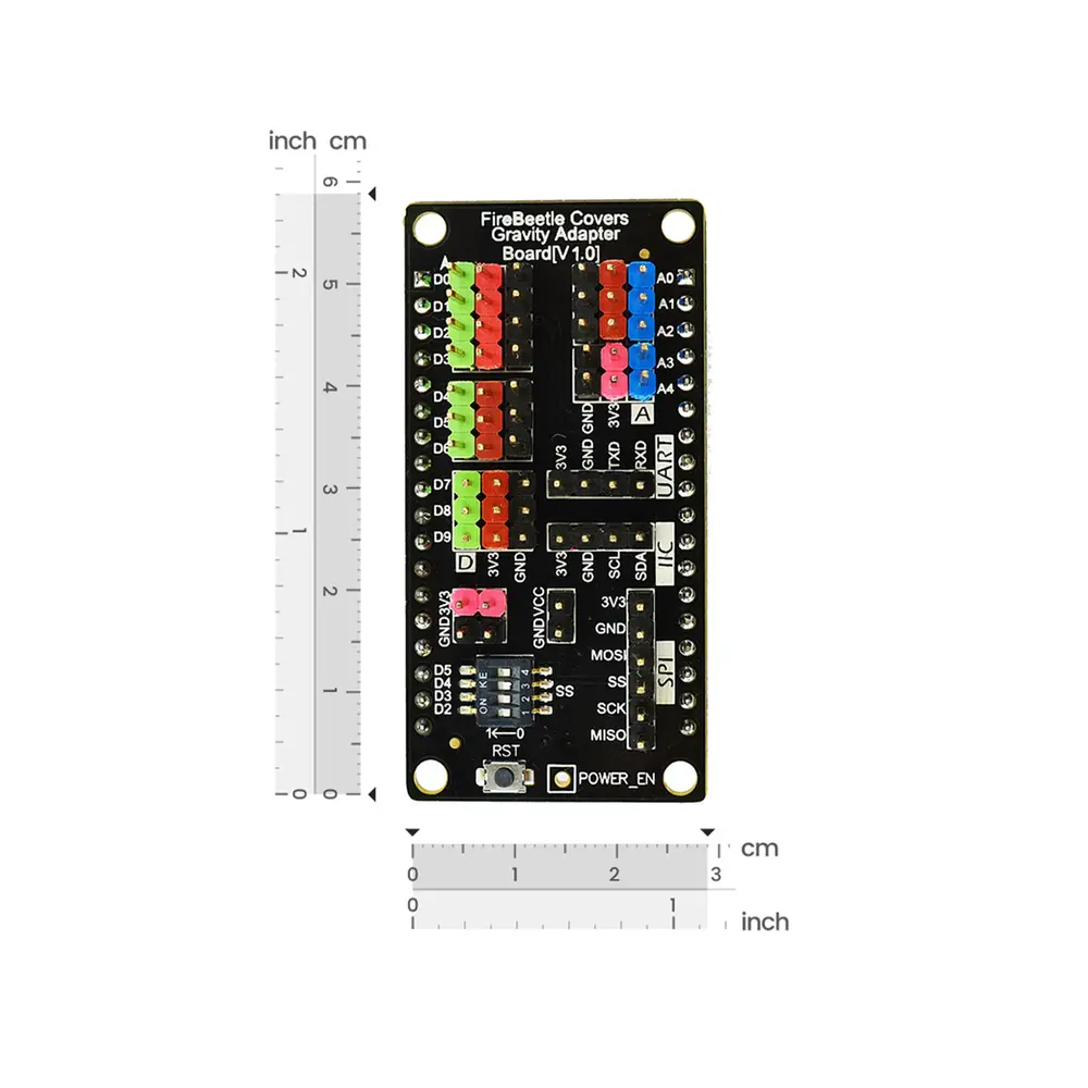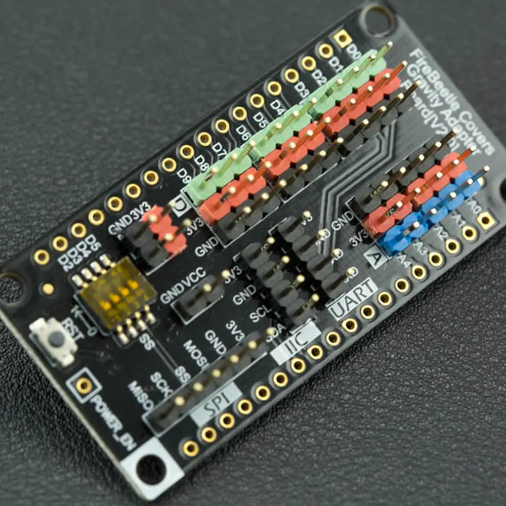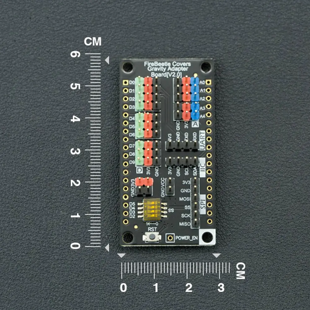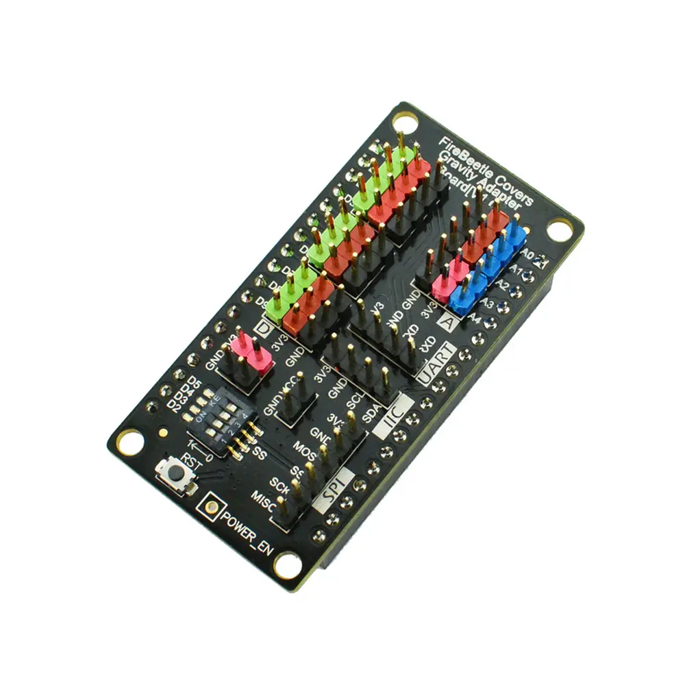 Un accesorio destacado de esta serie es el protector de expansión de E/S Gravity para FireBeetle Covers, que actúa como un conducto entre los sensores Gravity y los microcontroladores FireBeetle. Al establecer una conexión especializada, cada sensor se beneficia de pines de alimentación dedicados, lo que garantiza un funcionamiento estable y eficiente. Imagine configurar una red de sensores sin el cableado habitual; el protector de expansión es el puente que facilita su creatividad.