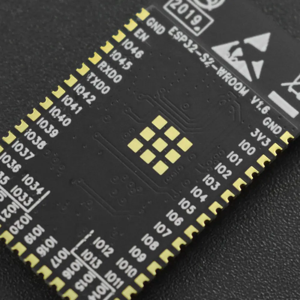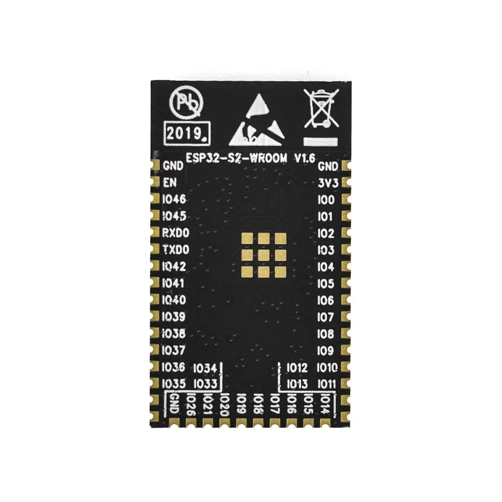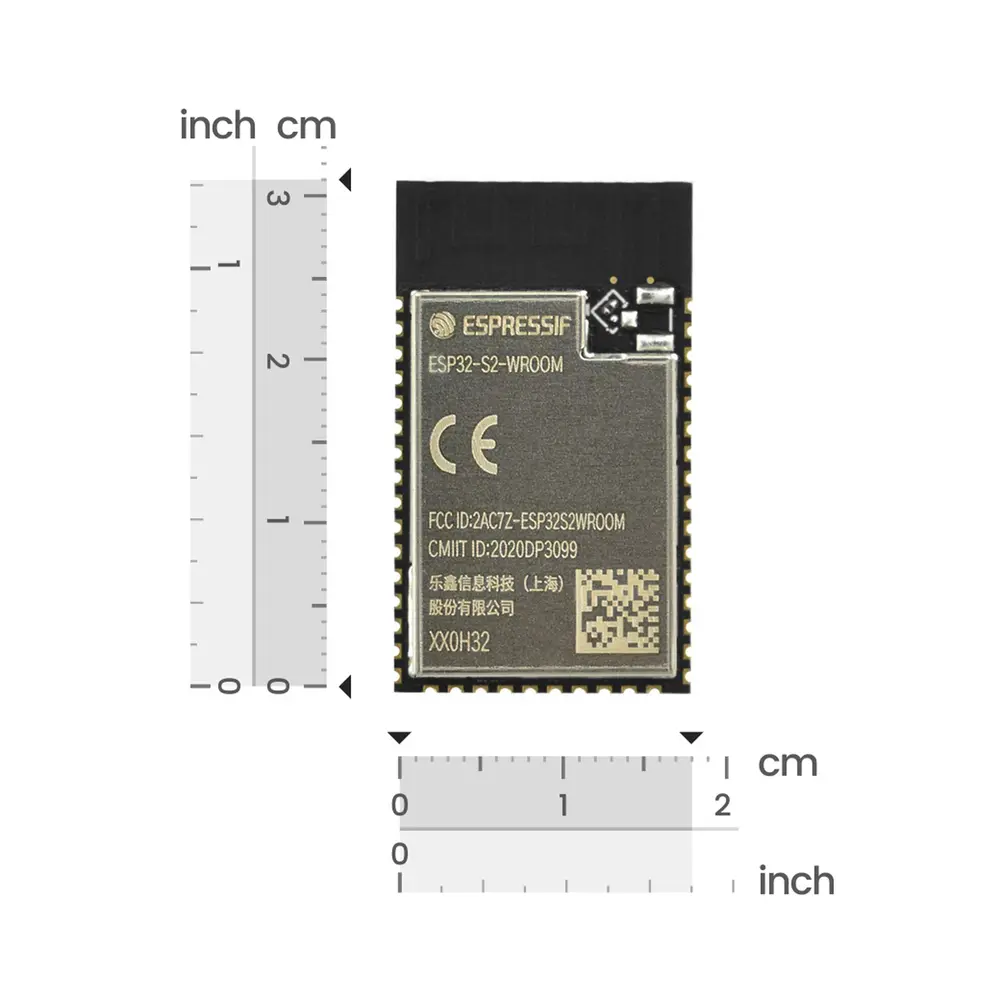El módulo Wi-Fi ESP32-S2-WROOM destaca por su alto rendimiento y eficiencia energética, gracias a su CPU de 240 MHz y su consumo ultrabajo. Es ideal para diversas aplicaciones, como IoT industrial, dispositivos domésticos inteligentes y dispositivos alimentados por batería. Equipado con 4 MB de memoria flash, el módulo simplifica tareas complejas como el procesamiento de datos en tiempo REAL y la inferencia de IA de borde, con amplio espacio para almacenamiento de firmware.