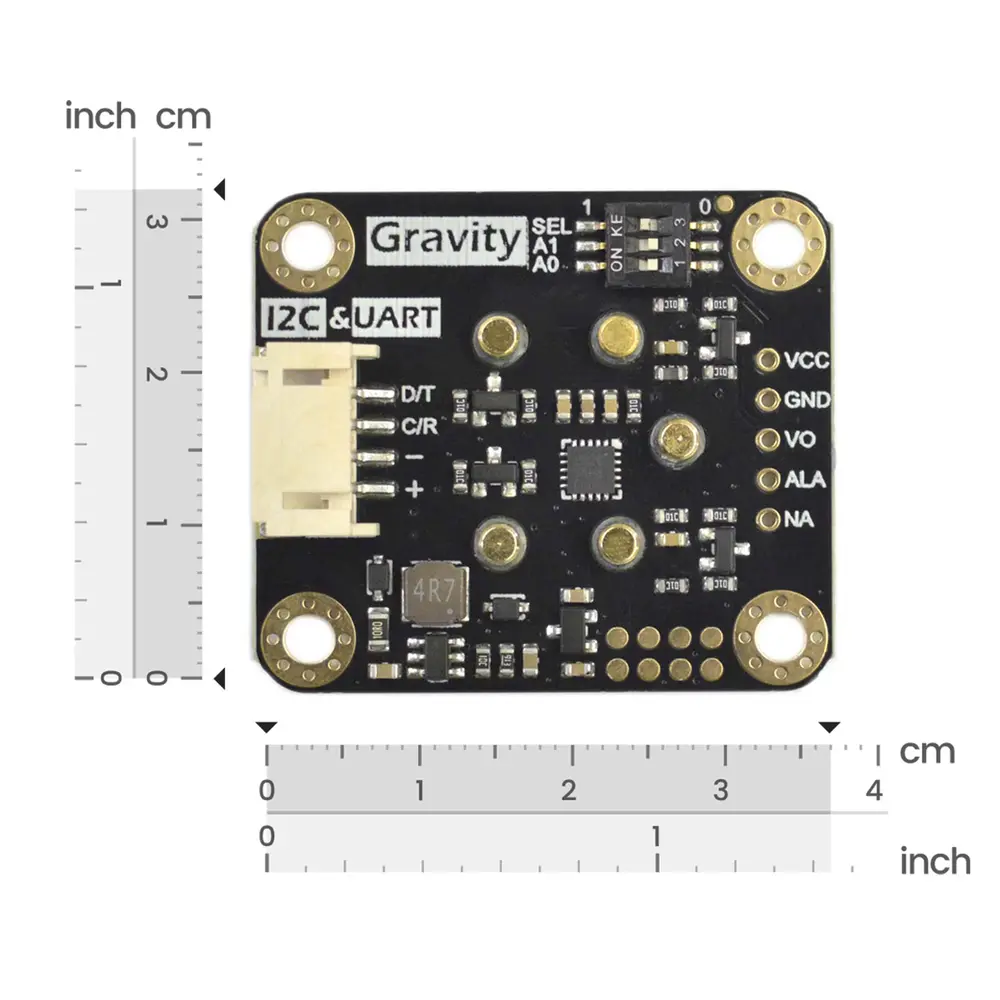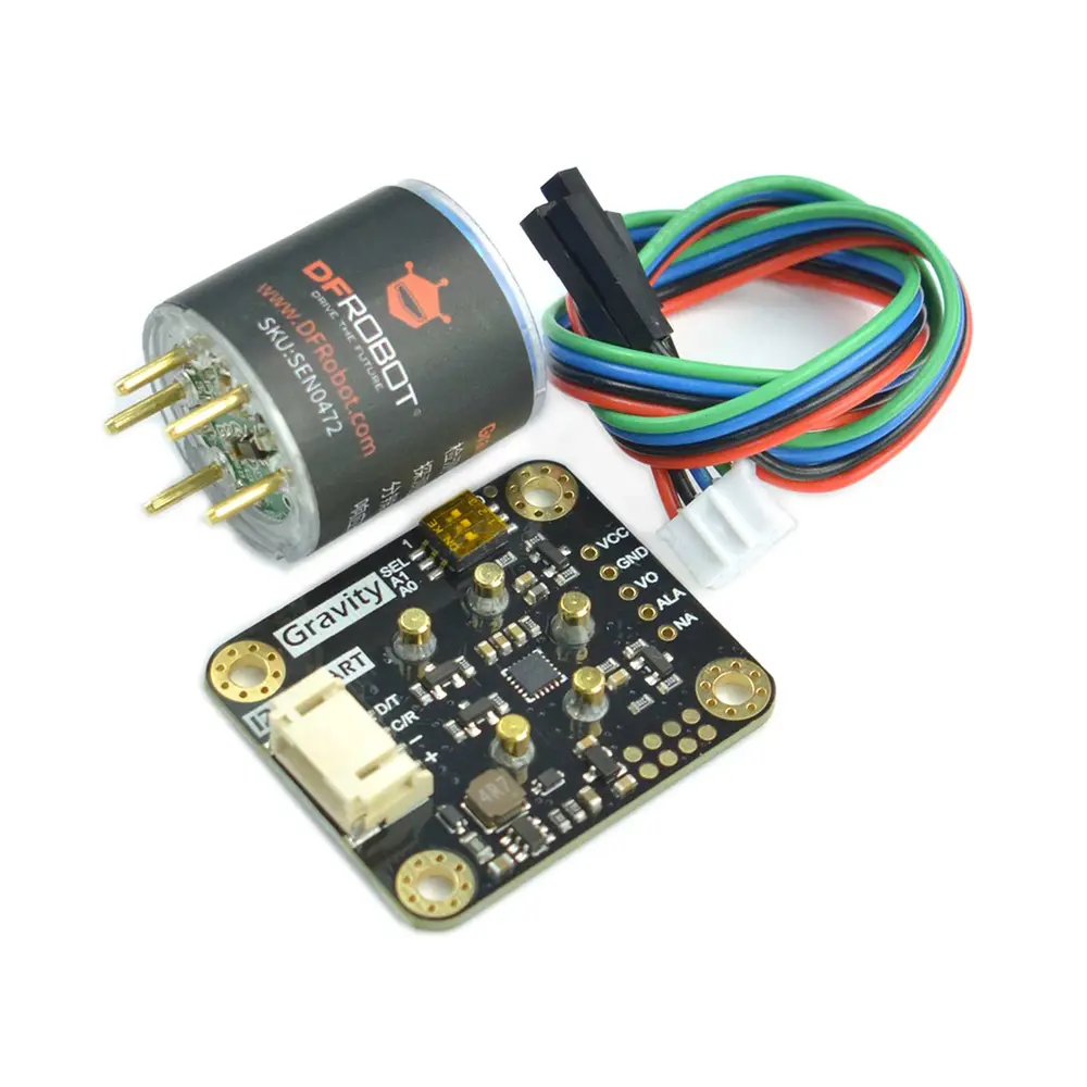 Utilizando el principio electroquímico, el sensor destaca por su alta capacidad antiinterferencias y notable estabilidad. Ofrece alta sensibilidad y durabilidad, con una vida útil de dos años. Con 32 direcciones I²C modificables, se integra a la perfección con dispositivos como Arduino , ESP32 y Raspberry Pi .