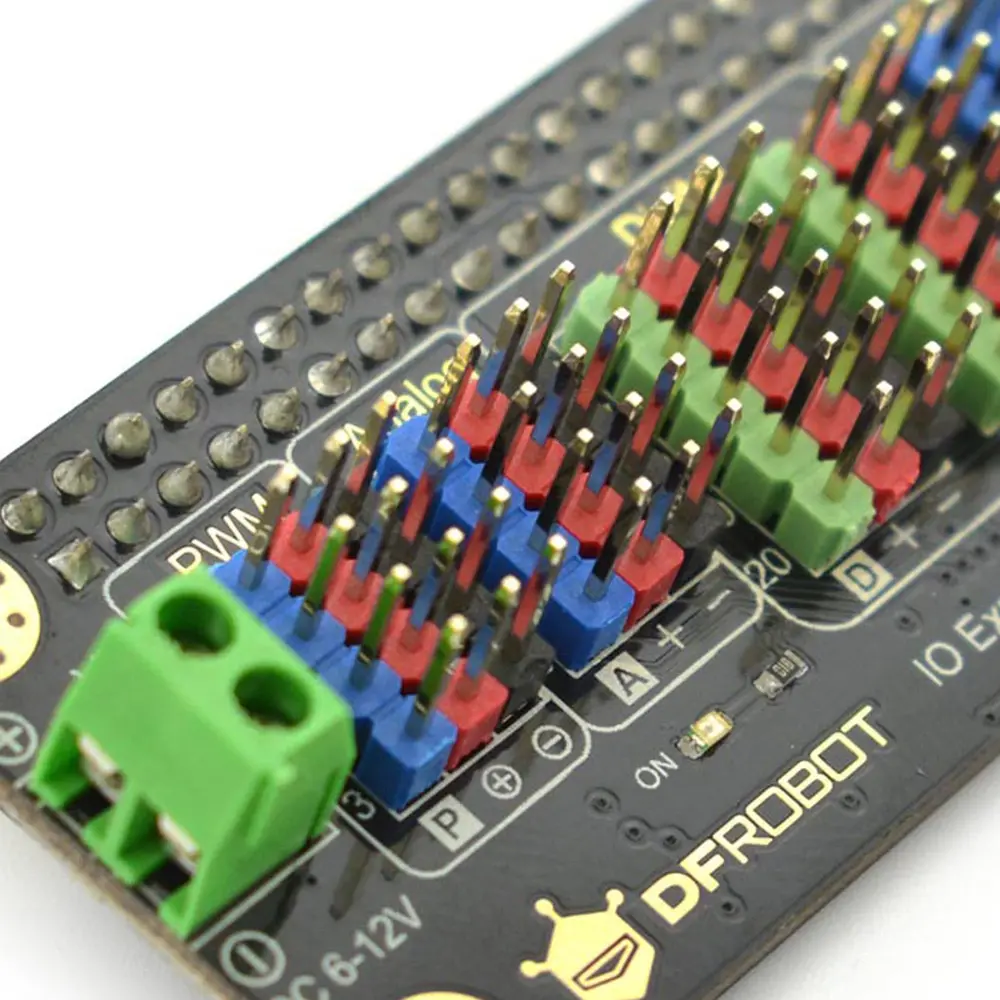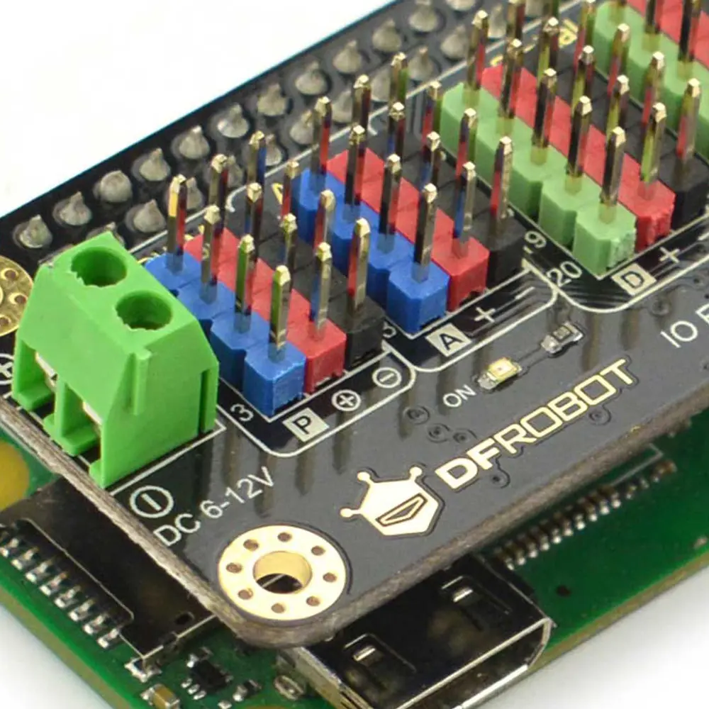 El HAT de expansión IO DFRobot mejora tu experiencia Raspberry Pi al ofrecer un conjunto completo de puertos, incluyendo digitales, analógicos, I₂C, PWM, UART y SPI. Su diseño compacto se integra a la perfección con dispositivos como Raspberry Pi 5, Zero y Zero W, ofreciendo una solución robusta que optimiza la funcionalidad sin sacrificar espacio.