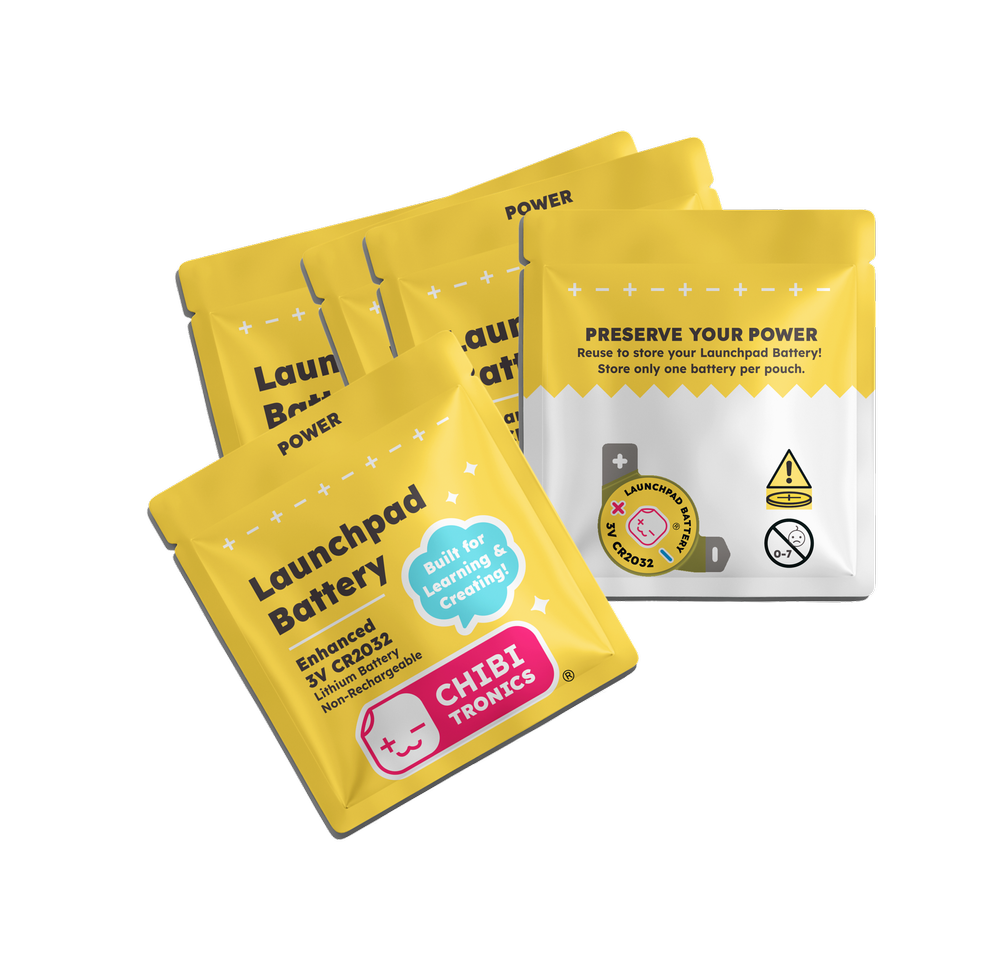 Encerrada en un revestimiento protector, la Batería Launchpad previene cortocircuitos y alarga la vida de la batería. Este diseño cumple con la Ley de Reese, ofreciendo una opción segura para cualquiera que haga proyectos de circuitos de papel.