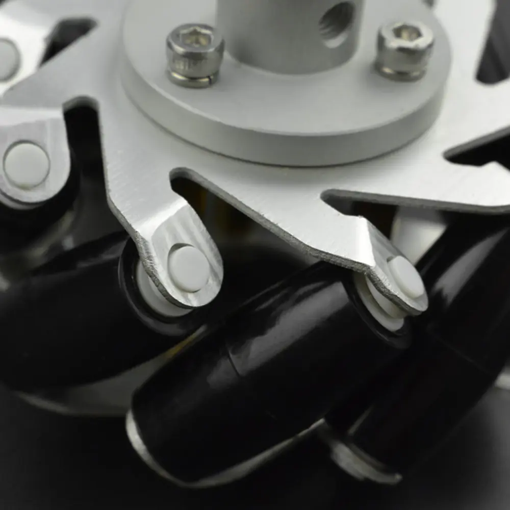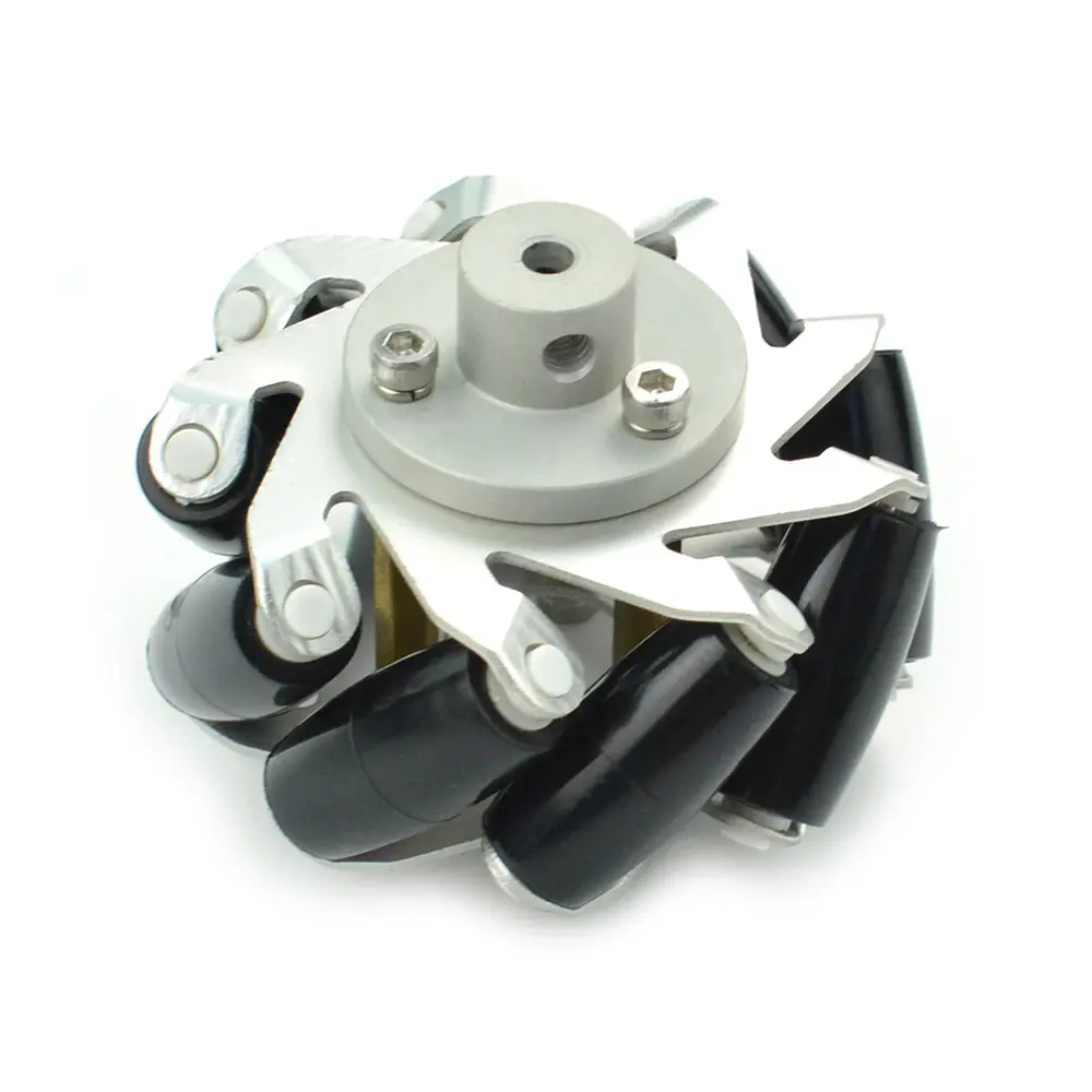 Mejorada a partir de las ruedas Mecanum convencionales, esta versión cuenta con un robusto exterior metálico para mayor durabilidad y una textura sofisticada que mejora su estética. Las ruedas están diseñadas con acoplamientos versátiles, compatibles con diversos ejes de motor, lo que garantiza una fácil instalación y adaptabilidad a diferentes proyectos de robótica. Esta funcionalidad simplifica los ajustes y la configuración, facilitando la integración en sus sistemas.
