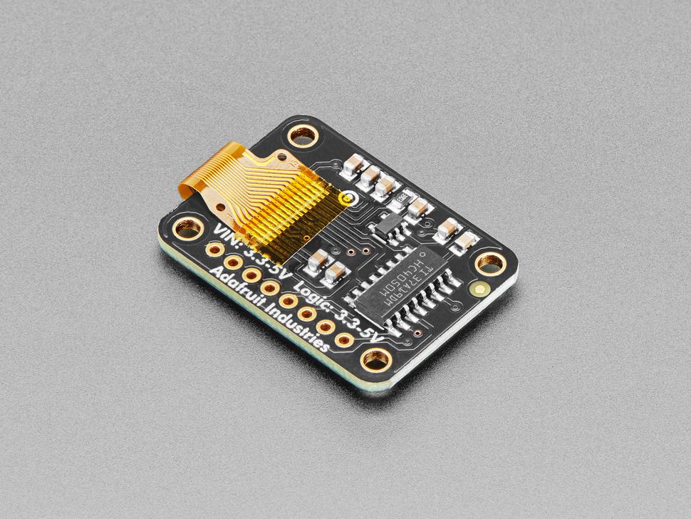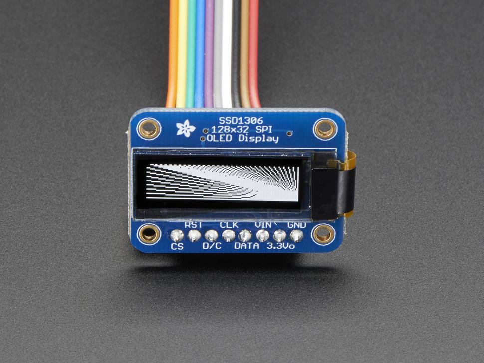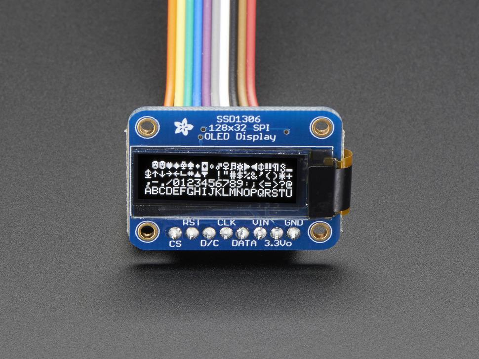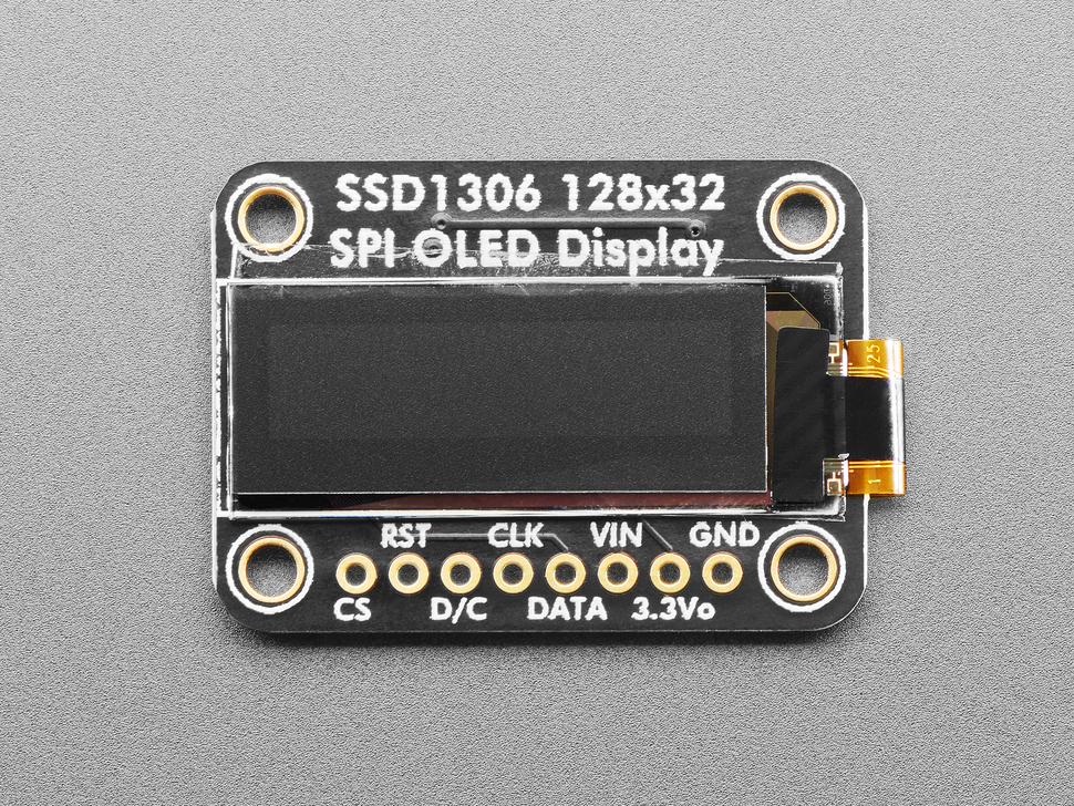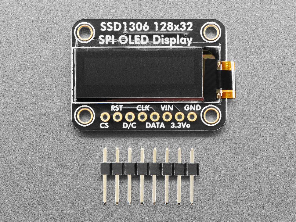 La pantalla utiliza el chip controlador SSD1306, se comunica exclusivamente vía SPI y requiere de 4 a 5 pines para la interfaz. Funciona con una fuente de alimentación de 3,3 V, complementada con un regulador de 3,3 V y un variador de nivel integrados, lo que la hace compatible con microcontroladores de 5 V como Arduino .