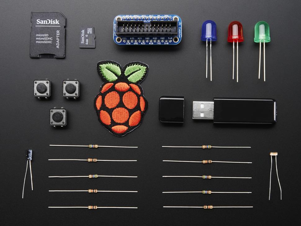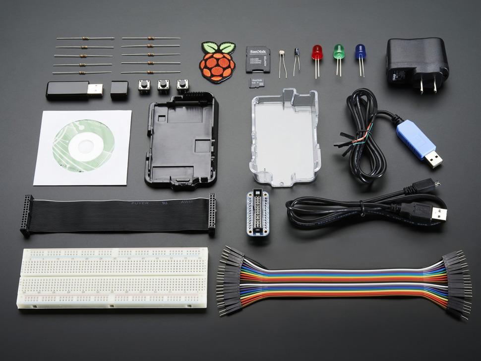 Empieza a hackear tu Pi rápidamente con el Paquete de Inicio Adafruit para Raspberry Pi . Incluye todo lo necesario para poner tu Pi a funcionar rápidamente, sin necesidad de soldaduras, ya que el Cobbler viene preensamblado. Ten en cuenta que este paquete no es compatible con el Modelo B+ ni con Raspberry Pi 2, ni incluye la Raspberry Pi 1 Modelo B.