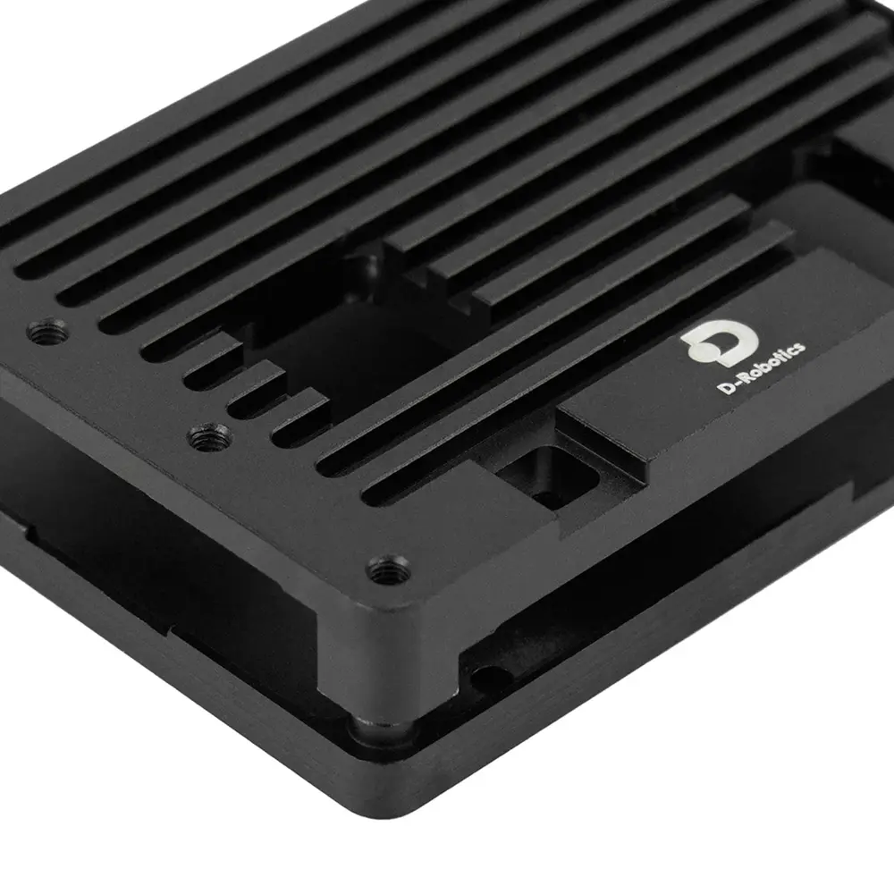 La carcasa metálica con disipador térmico RDK X5 está diseñada específicamente para la placa base RDK X5 AI y presenta una robusta construcción de metal anodizado negro. Esta carcasa no solo protege, sino que también mejora el rendimiento mediante una gestión eficaz del calor. Durante tareas computacionales exigentes, desempeña un papel fundamental en el mantenimiento de la estabilidad de la placa, dispersando el calor eficientemente.