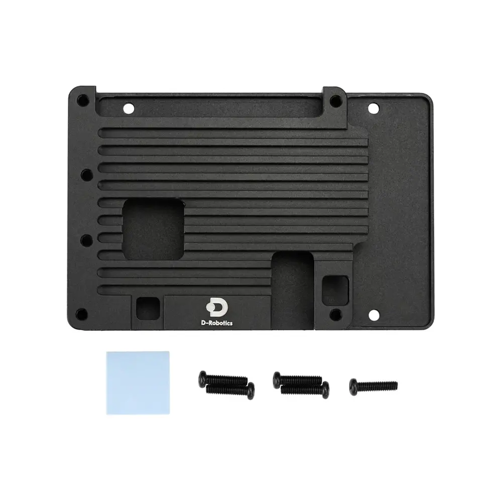 Toda la carcasa metálica actúa como un disipador pasivo de gran tamaño, lo que aumenta la capacidad de disipación térmica y evita el estrangulamiento térmico. Esto garantiza que la placa RDK X5 funcione sin problemas, incluso bajo cargas pesadas. La carcasa incluye una almohadilla térmica de silicona que garantiza una transferencia de calor eficiente directamente de la CPU a la carcasa.