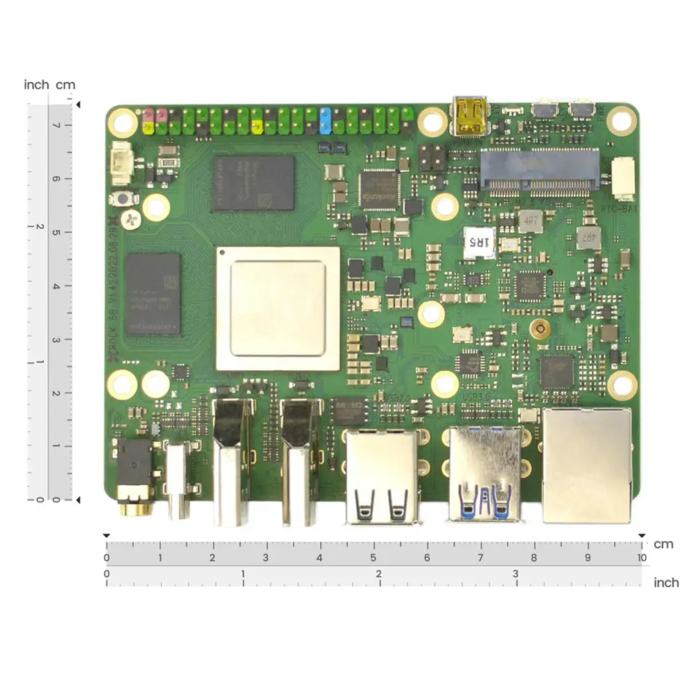La ROCK 5B es una robusta y versátil computadora monoplaca ARM (SBC) basada en el potente SoC Rockchip RK3588. Esta placa cuenta con características destacadas, como una CPU Quad Arm Cortex A76, una CPU Quad Arm DynamIQ Cortex A55 y una GPU Arm Mali G610MC4. Con conector de audio estéreo, dos puertos HDMI con resolución de hasta 8Kp60 y una entrada micro-HDMI para resolución 4Kp60, ofrece amplias capacidades multimedia.