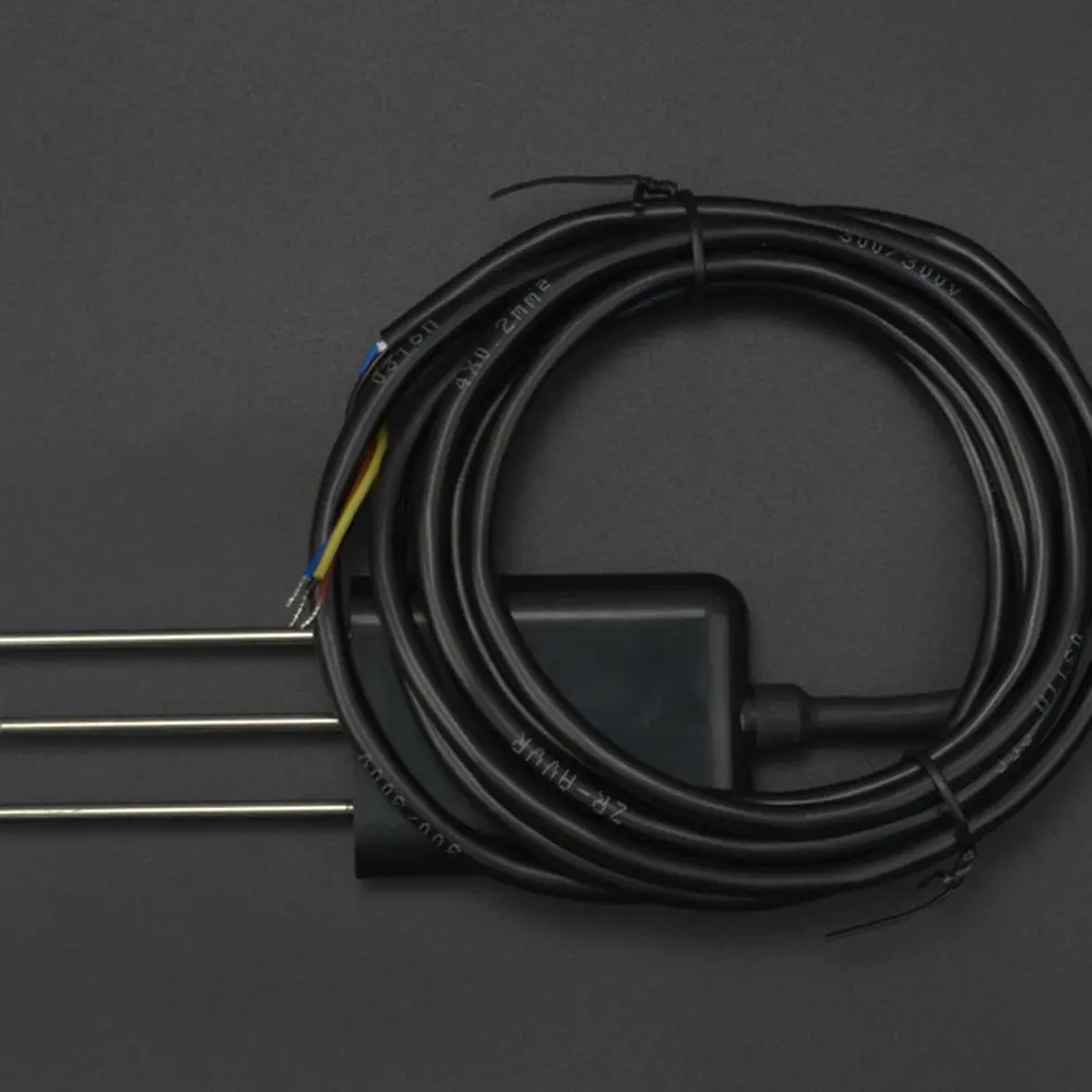 Con un robusto nivel de protección IP68, el sensor está sellado al vacío con resina epoxi negra ignífuga. Su sonda, fabricada en acero inoxidable 316, es resistente a la corrosión, al agua y a la corrosión. Es resistente a la corrosión salina-alcalina y a la electrólisis prolongada, lo que ofrece una durabilidad excepcional incluso en suelos con alto contenido de sal. Su diseño compacto permite que permanezca enterrado a largo plazo sin comprometer su rendimiento en diversos tipos de suelo.