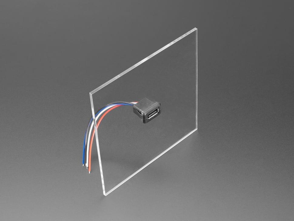 Simplemente corta un orificio rectangular de aproximadamente 2 cm x 1 cm, con un grosor de hasta 4 mm, y encaja el panel para un ajuste perfecto que oculte cualquier imperfección del corte. Ideal para añadir un puerto host USB A a las carcasas de tus proyectos, con un cable rojo para 5 V, un cable blanco para D-, un cable azul para D+ (normalmente verde) y un cable negro para la toma de tierra.