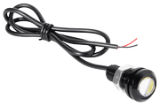 LED Eagle Eye de 12 V con color de luz blanca en una carcasa negra. Este LED de potencia de 3W tiene un diámetro de 18m y se puede montar sin problemas en un orificio de 10mm. Además, este LED es resistente al agua y a los golpes, por lo que se utiliza a menudo en automóviles.